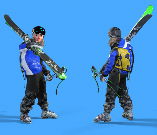 It's ski season!! I had too much fun making all of this, as it was a passion project that I had planned ever since I got into 3D. It was a journey of nonstop learning and getting out of my rigging comfort zone to dive fully into sculpting. It was intimidating to think that I'd need a full character done in a few weeks, and I'm still surprised by how much I was able to learn and do in that time. This is also my first time doing a real time render! ALL aspects done by me.